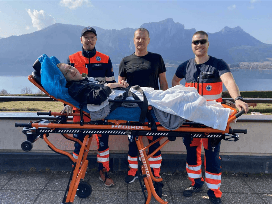 Záchranári z Čadce a Skalitého previezli po polročnom boji o život Martina z Vavrečky z nemeckej nemocnice konečne domov. Pod ním a kolegom Oliverom sa minulý rok zrútila na stavbe v Nemecku plošina z výšky 38 metrov. Olivera stále liečia na klinike v Gailingene.